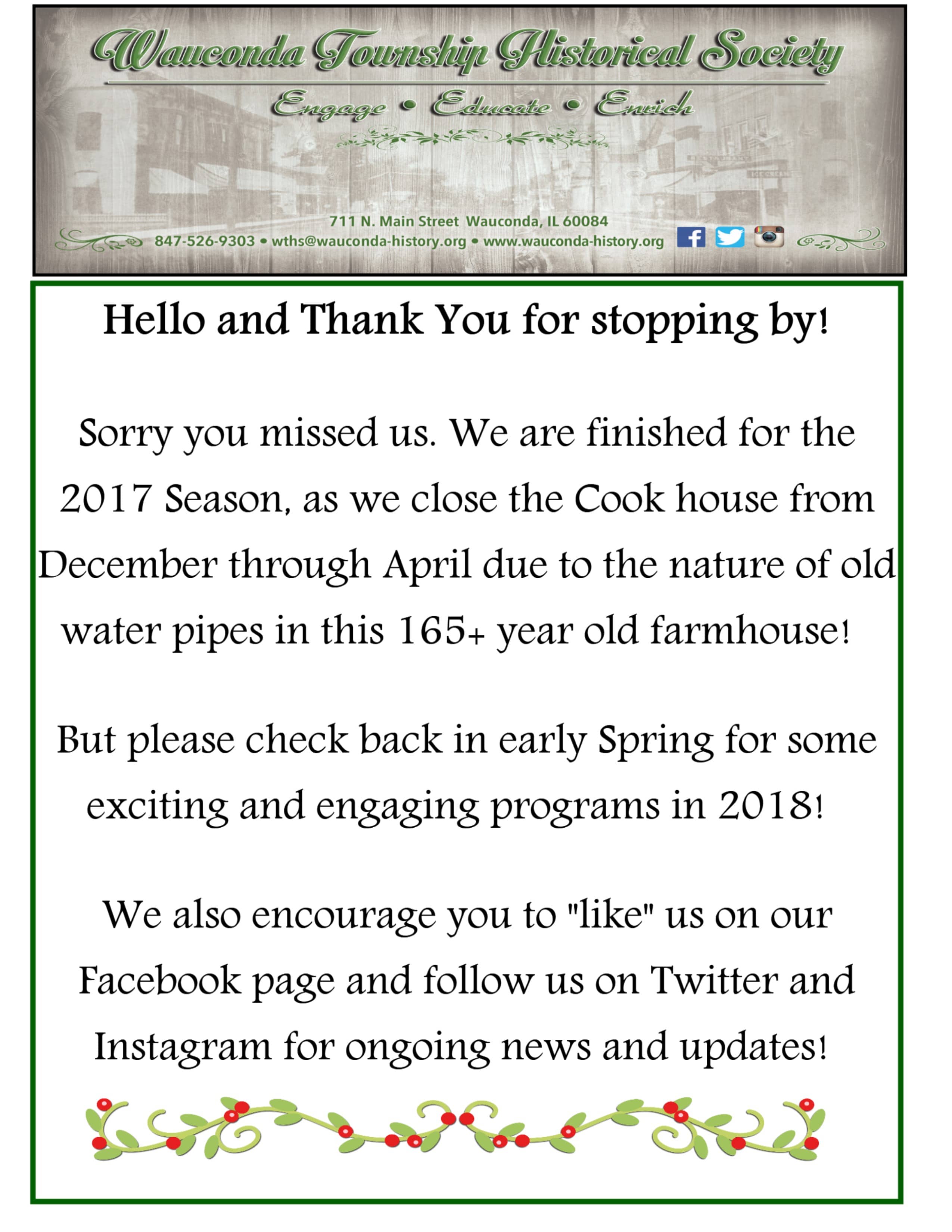 Check out our historical books and Cook House watercolor print. All proceeds benefit the Wauconda Township Historical Society.